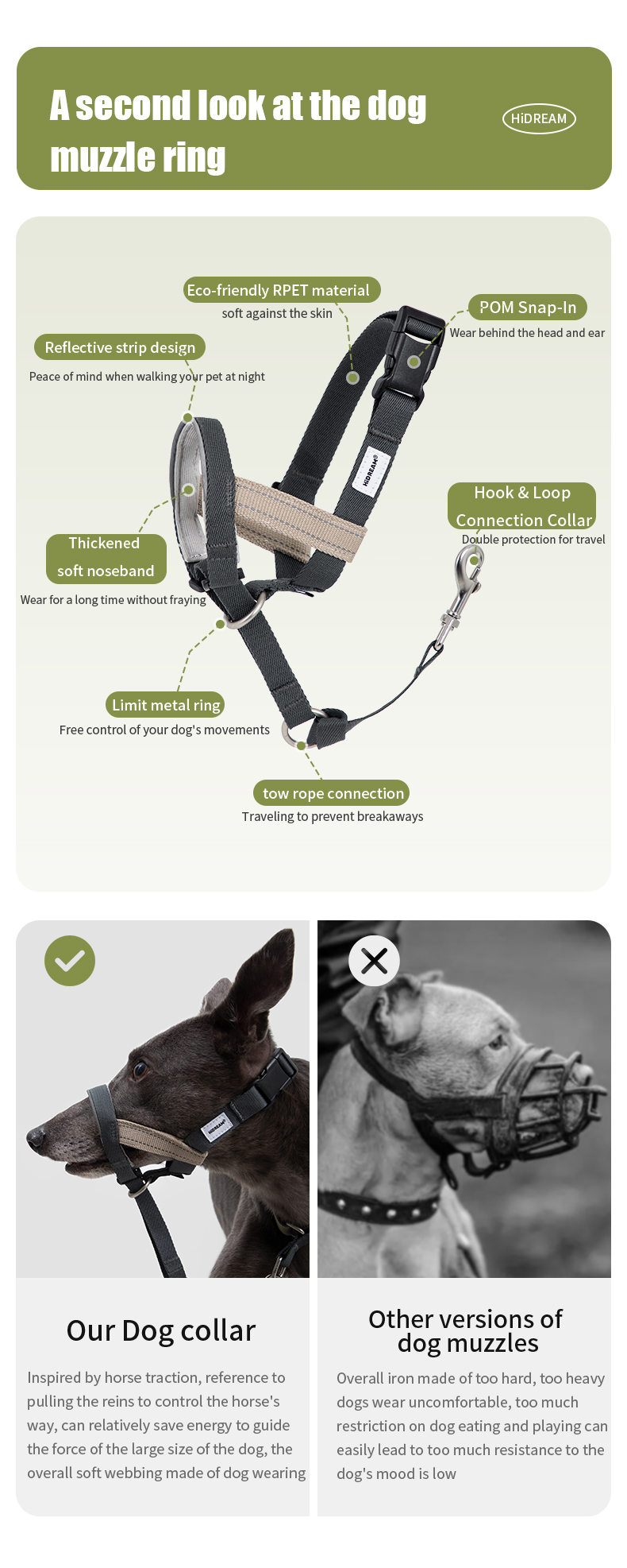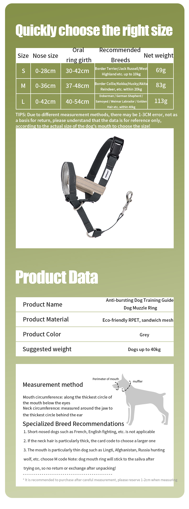 Designed to prevent sudden lunges and promote effective dog obedience training, this anti-pull muzzle gently restricts excessive pulling with a simple tug. The ergonomic fit keeps your dog securely in place, while the thickened, soft nose area ensures comfort for long wear without causing irritation. Perfect for dogs undergoing obedience training, this muzzle provides a controlled and comfortable walking experience.